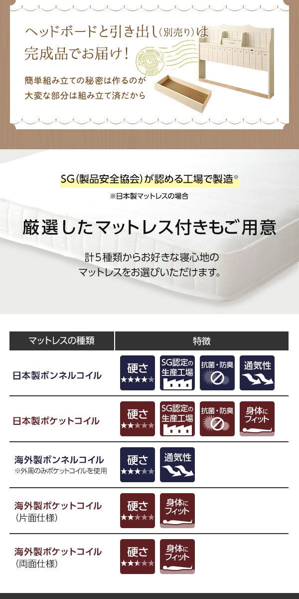 SGマーク付国産ポケットコイルマットレス付き
