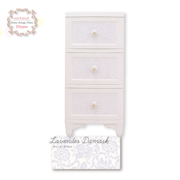 (キーワード: 整理 整頓 容量 収納 格納 収容 ラック 棚 シェルフ 台 デザイン オシャレ おしゃれ ラック タンス 整理ダンス たんす 箪笥 チェスト 便利 簡単 埃 対策 TCC545963 RDA0002809079 4087847 インテリア 寝具 収納家具 タンス チェスト タンス チェスト 収納 変身力抜群のドレスチェンジチェスト タンス キャビネット 木製家具のようなデザインと多彩なカラーバリエーションが魅力 華やかなラベンダーダマスク柄で衣類整理 収納 に優れた3段式 猫脚が優雅な足元を演出し、姫系の雰囲気を醸し出す 日本製 国産 の高品質でおしゃれな整理 収納 を実現)
