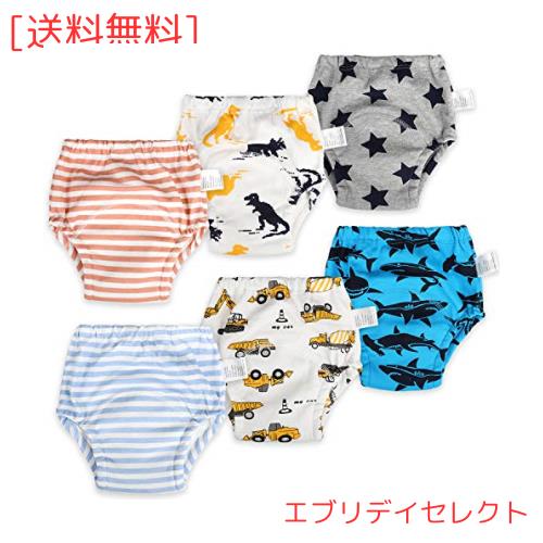 かわいいパターン:これらのベビートレーニングパンツには、恐竜、縞模様、バンナナなど6種類のパターンがあり、トイレトレーニング中に赤ちゃんが毎日違った興味を持っていると感じることができます。彼らは素敵なパンツが大好きです。