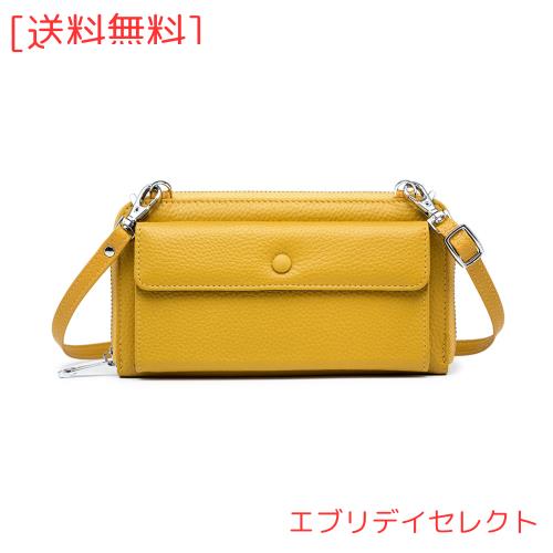 [imeetu] スマホショルダー スマホポーチ レディース ミニショルダーバッグ 長財布 本革 おしゃれ 斜め掛け 肩掛け(イエロー)