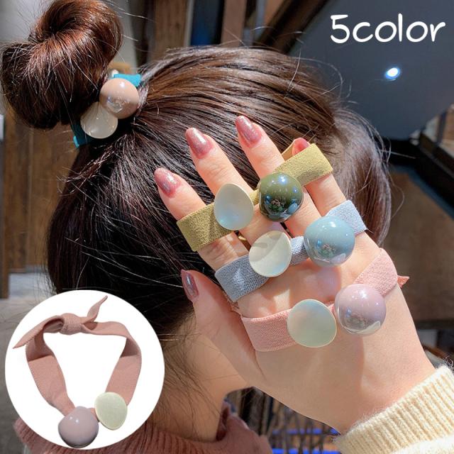ヘアゴム 平ゴム 単品 レディース ヘアアクセサリー リボン風 ボールチャーム 太め ブレスレット 腕飾り おしゃれ かわいい