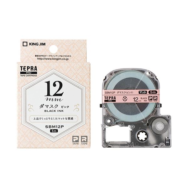 上品で洗練されたマットラベル、反射を抑えてインテリアやラッピングにもマッチする、しっとりとした風合いのテプラ PROテープカートリッジ ダマスク柄のピンクが魅力的な12mm幅、黒文字の鮮やかさが引き立つ 使い勝手も抜群 (まとめ)キングジム テプラ PROテープカートリッジ マットラベル 模様 12mm ダマスク(ピンク)/黒文字 SBM12P 1個【×5セット】