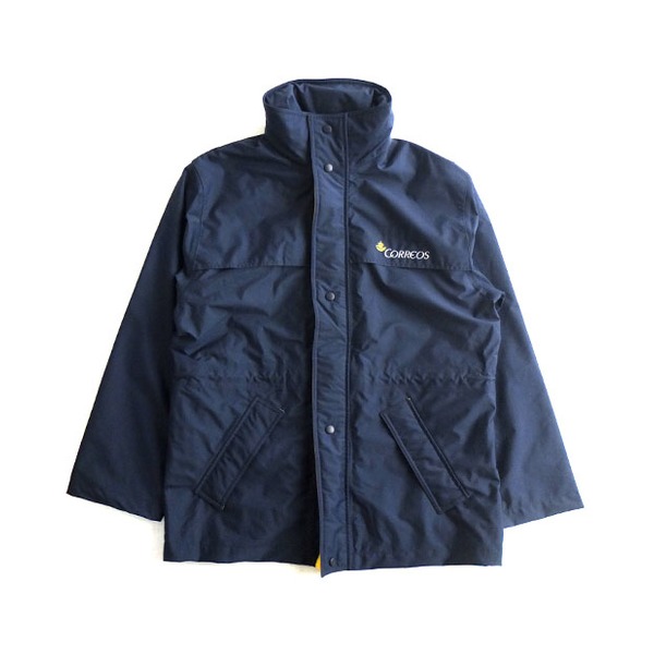 未使用のデットストック品です。スペインの郵便(コレオス)配達員が実際に使用するスタンドカラーの防水ナイロンジャケットです。左胸のロゴは刺繍となっております。