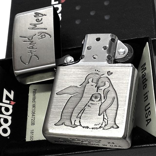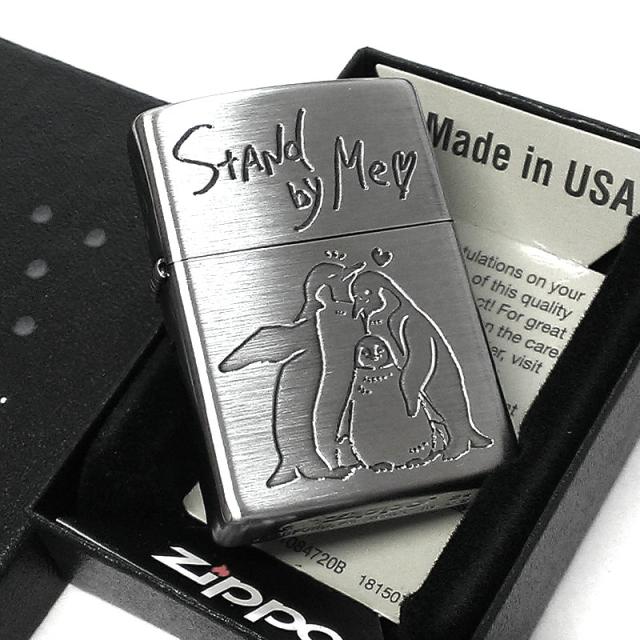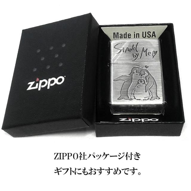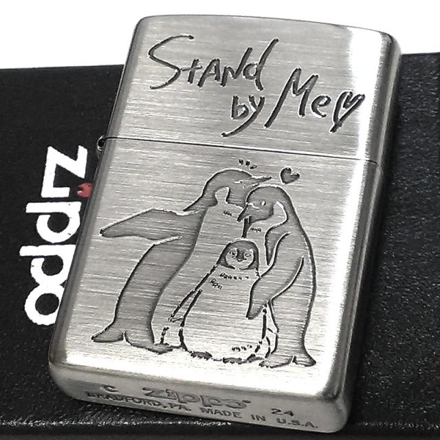 ZIPPO ライター ペンギン 親子 アニマル ジッポ Stand by Me 動物 かわいい メッセージ入り シルバー 可愛い おしゃれ レディース