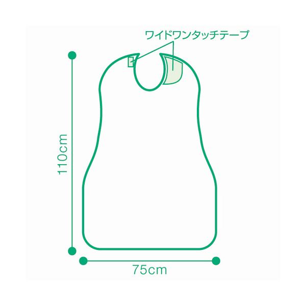 ●ワイドワンタッチテープ付、首周りのサイズ調整も簡単。