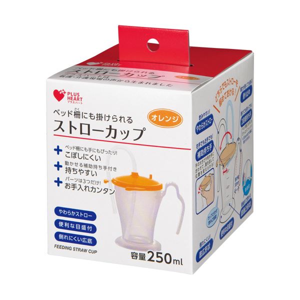 商品仕様: (まとめ)オオサキメディカル プラスハートベッド柵にも掛けられる ストローカップ オレンジ 250ml 1個【×10セット】