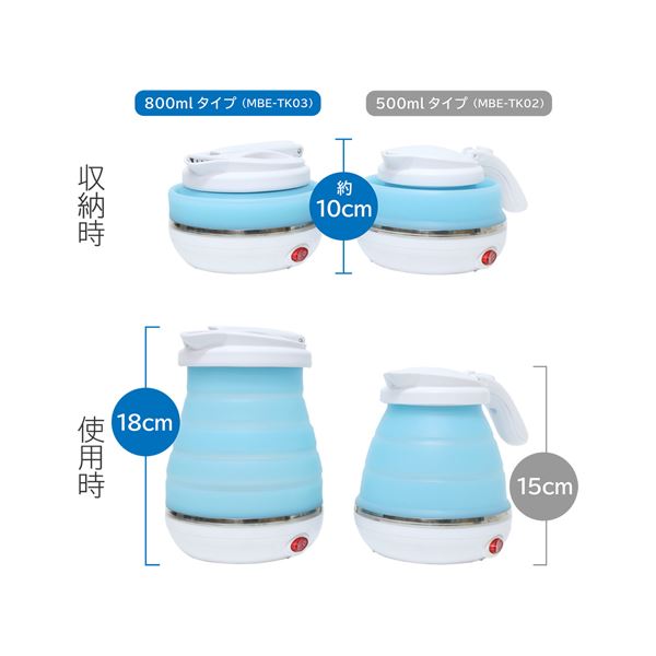 折りたたんでコンパクトになる 800mlのホワイトトラベルケトル、あなたの旅を快適にするの革新的なキッチン 台所 アイテム 白 MCO 折りたたみトラベルケトル 800ml ホワイト MBE-TK03/WH 白
