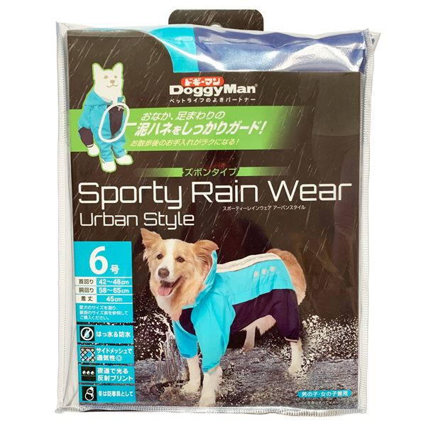 スポーティーレインウェア アーバンスタイル 6号 ブルー×ネイビー (ペット用品) 青 簡単装着で足まで守る 暗闇でも安心 都会的なスポーティーレインウェア ブルー×ネイビーのペット用品 青 送料無料