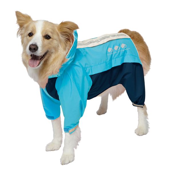 簡単装着で足まで守る 暗闇でも安心 安全 都会的なスポーティーレインウェア ブルー×ネイビーのペット用品 青 簡単装着で足まで守る 暗闇でも安心 安全 都会的なスポーティーレインウェア ブルー×ネイビーのペット用品