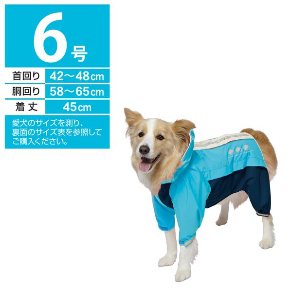 簡単装着で足まで守る 暗闇でも安心 安全 都会的なスポーティーレインウェア ブルー×ネイビーのペット用品 青 スポーティーレインウェア アーバンスタイル 6号 ブルー×ネイビー (ペット用品) 青