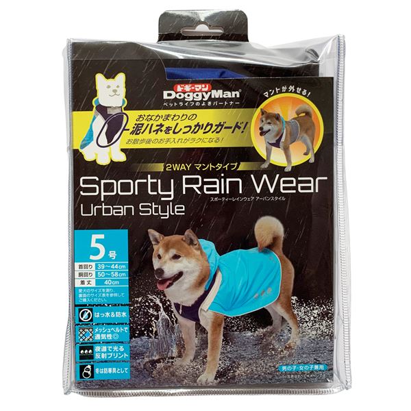 スポーティーレインウェア アーバンスタイル 5号 ブルー×ネイビー (ペット用品) 青 安心の胸元ガード 夜道も安全 スポーティーな都会スタイル 防水×撥水生地のペット用スーツ 5号 ブルー×ネイビー 青 送料無料