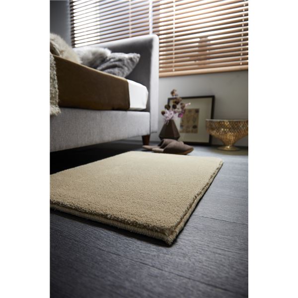 (キーワード: じゅうたん 敷物 高級 流行 デザイン おしゃれ オシャレ 耐久 清潔 機能 TCC530835 RDA0003901338 4859180 インテリア 寝具 カーペット ラグ ラグ 収納 マット 畳 上品でモダンな雰囲気漂う、おしゃれなフロアカーペット 消臭効果と防炎性能も備え、玄関を華やかに彩る サイズは約50×80cmのベージュカラー 100%ポリエステル製で、快適な足触りを実現 エントランスや入口に最適な一品)