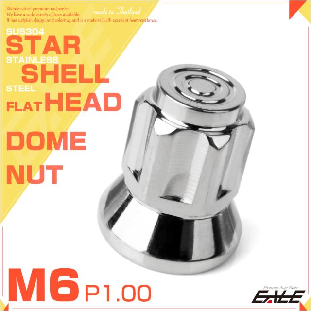 ドームナット M6 P1.00 六角 袋ナット スター シェルヘッド フラット SUS304ステンレス シルバー TF0247
