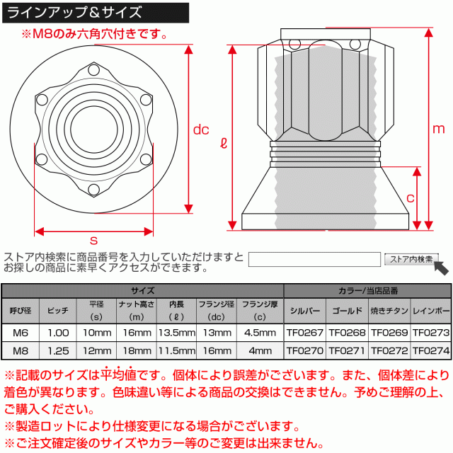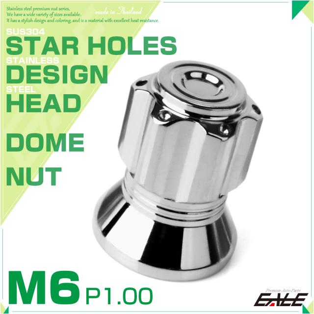ドームナット M6 P1.00 六角 袋ナット スターホール デザインナット SUS304ステンレス シルバー TF0267