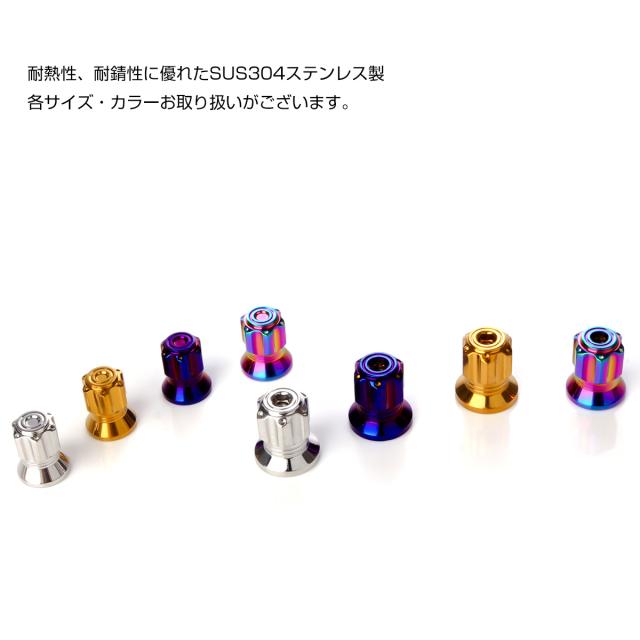 マフラーを取り付けるナットと交換したり、ボルトのネジ山を隠してドレスアップしたい場所など、サイズが合えば様々な箇所にご使用頂けます。