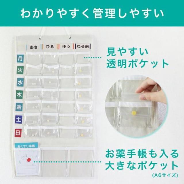 - 一包化した薬を入れるのにも対応してるポケットです。飲み忘れが無くなりました。 しかし月〜日の表示が左側にしかないので、「えーと」となるのが少し残念でした。 あと一包化の印字されてるインクがポケットのビ...