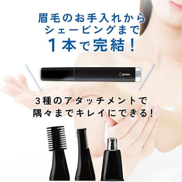●3種のアタッチメント付きで1本で眉毛のお手入れからシェービングまでムダ毛処理を解決!
