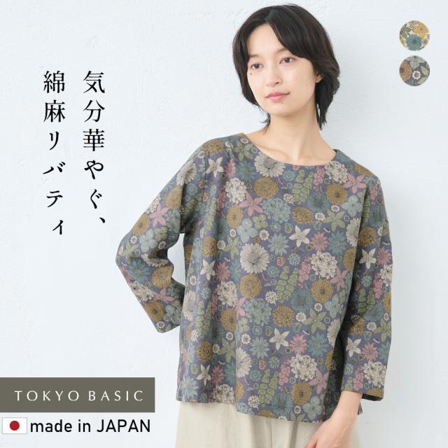 [ ブラウス レディース おしゃれ 長袖 花柄 ] リバティ リネンコットン 七分袖ブラウス / 日本製 40代 50代 60代 30代 女性 ファッション トップス 綿麻 リバティプリント ゆったり 大きめ LIBERTY HamptonsBouquet HOKKOH