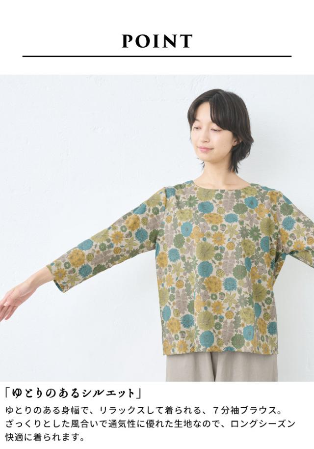 リバティ リネンコットン 七分袖ブラウス