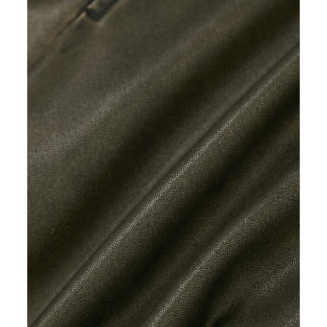 ジャケットとブルゾンの間の様なデザインに落とし込むことで、綺麗めカジュアルな印象に仕上げたレザージャケット。