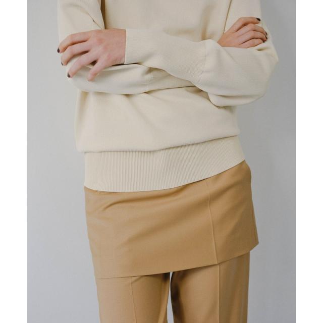 トレンドのスカートとパンツのレイヤードスタイルが一着で楽しめる点が魅力。