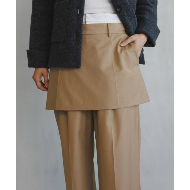 1タックのストレートシルエットのスラックスと、ミニスカートが2枚セットになったアイテム。