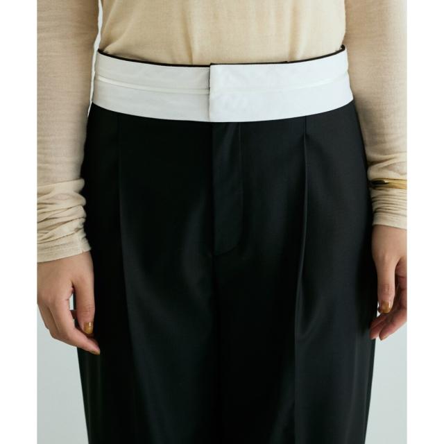 単品のスラックスとしてはもちろん、ミニスカートはトレンドの腰巻きプラス1アイテムとして、お手持ちのパンツとレイヤードも是非。