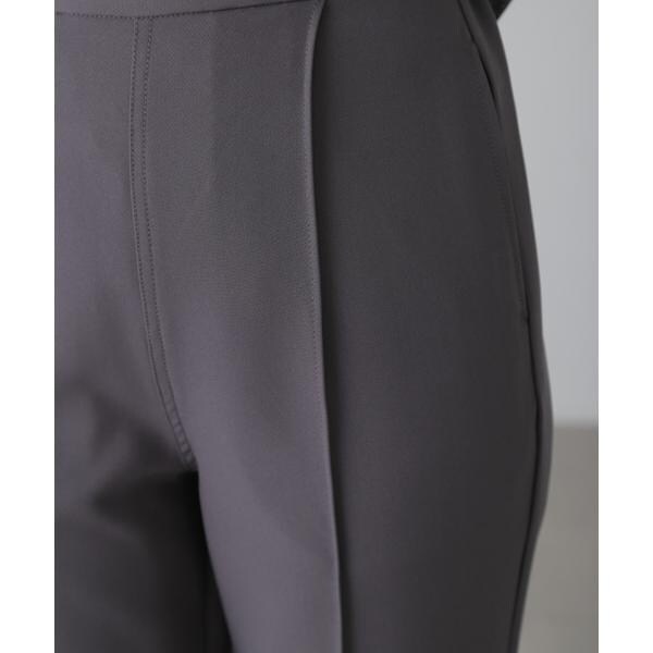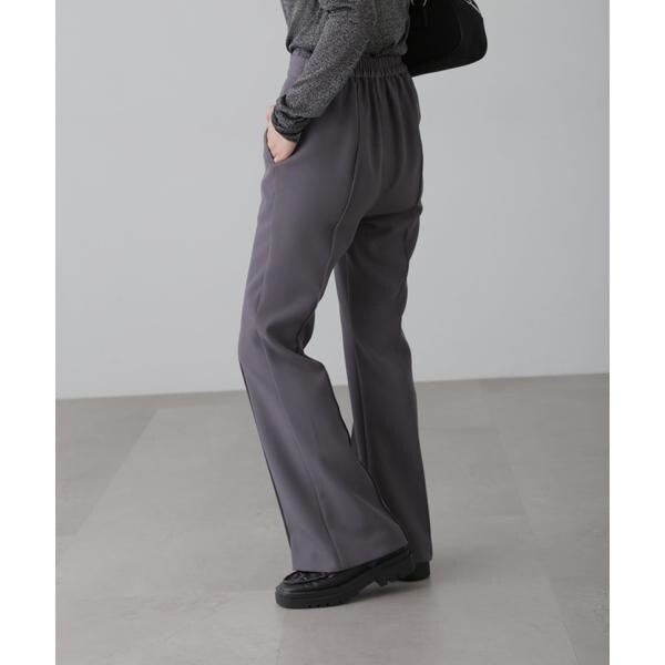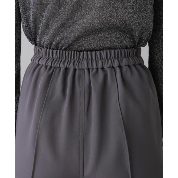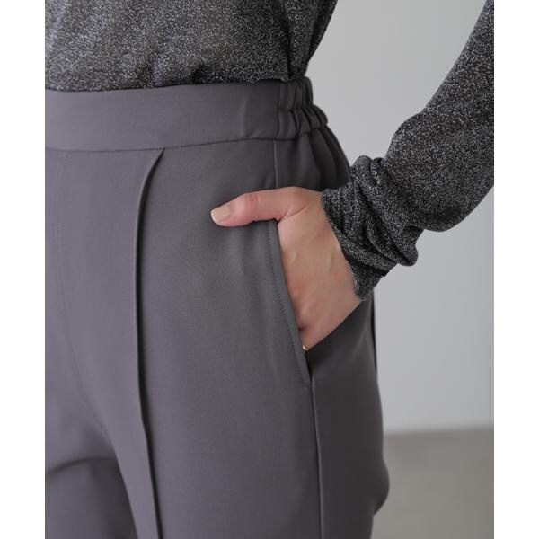 オールシーズン着用していただける中肉のダブルクロス生地を使用。きれいな目面でスラックスパンツなどに適した生地を、あえてウエストゴムのリラックスパンツにデザインを落とし込んでいます。センターにピンタックを入れ、お洗濯をしてもとれないようにしているのも嬉しいポイント。ややリラックス感のある、ゆるやかなフレア型です。シワになりにくく、膝あたりも出にくく、ナチュラルストレッチが効いてデイリーに使える着心地良いパンツです。トップスはカジュアルにスウェット、ビッグシャツやロンTと合わせたり、ビスチェやデザインブラウスと合わせたフェミニンスタイルもおススメです。※こちらの商品はXSサイズの展開がございます。◆サイズ目安◆XSサイズ→身長150cm−152cm ウエスト57cm−59cm※モデルの着用画像の場合、光の当たり具合により、実際の色味と異なって見えることがございます。色味は、商品単体の画像をご参照ください。