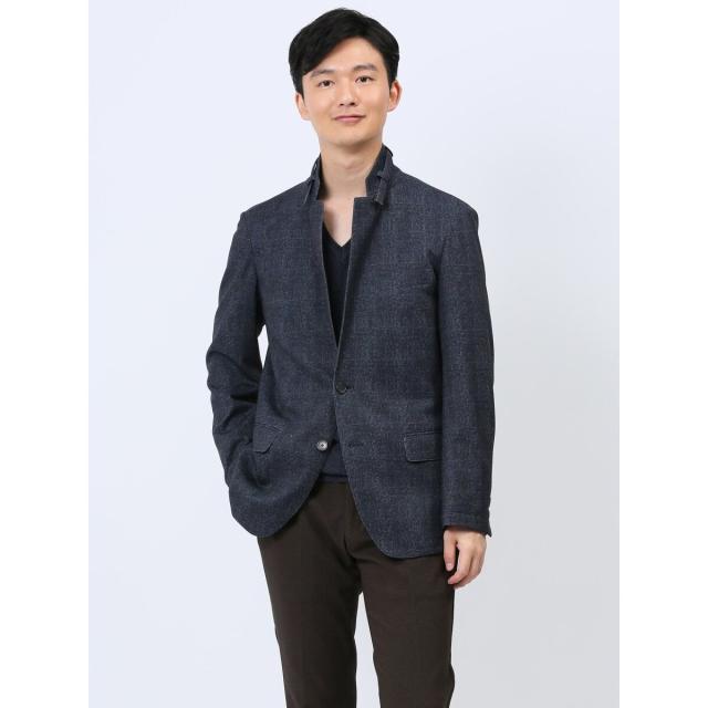 TechMove スリムフィット 衿ベルト2ボタンジャケット チェック紺(セットアップ可能)
