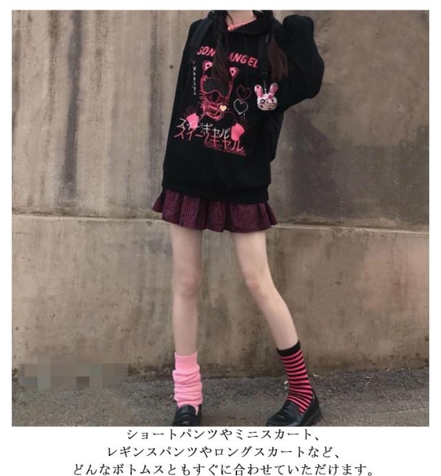 | かわいいフード付きパーカーが登場します! カジュアルな原宿スタイル。フード付きなので、保温性がGood! フロント可愛いプリント付き、オシャレで病みかわいい雰囲気を引き立てます。 ちょっとゆったりめのシルエットで、おしゃれなデザイン感を持ちながら、体型カバー効果も抜群です。 ショートパンツやミニスカート、レギンスパンツやロングスカートなど、どんなボトムスともすぐに合わせていただけます。 | |
