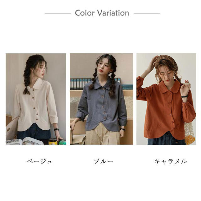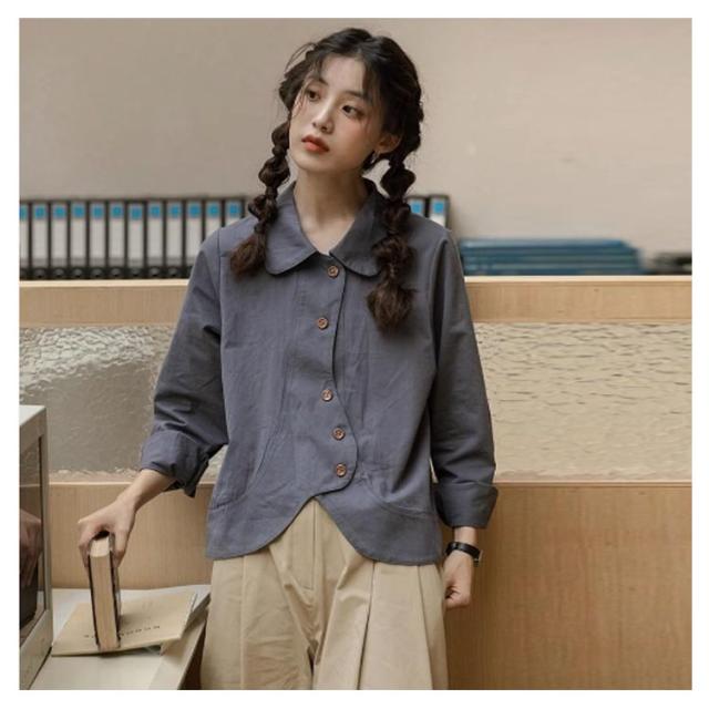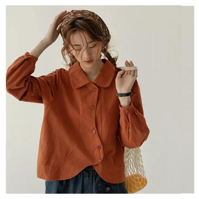 春 トップス アシメトリー シャツ ブラウス 開襟シャツ 長袖 カジュアル ナチュラル 可愛い ショート丈 春服 春物 綿混