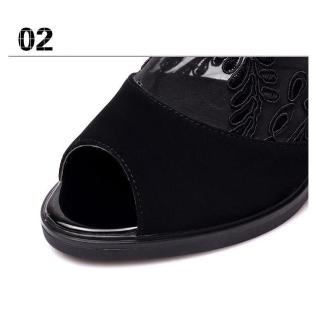| スタイリッシュでロングシーズン使えるブーツサンダル サンダルとブーツを組み合わせたルックスが抜け感を生み、存在感を引き立てる。 女性らしさを表現するディテールとしてアッパーをメッシュ切り替えたデザインに注目。 肌見せがトレンドの今夏にもぴったりで、品よく肌が露わになる大人っぽいデザインに仕上げています。 | |