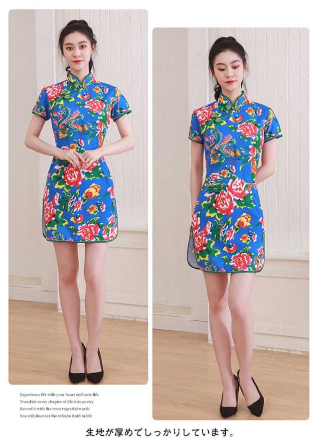 チャイナドレス ロング ミニ丈 花柄 チャイナ ワンピース チャイナ服 パーティードレス コスプレ 衣装 レディース チャイナ風 ロングワンピース スリット 大人 半袖 ハロウィン パーティー コスチューム お祭り 出演 仮装 学園祭 文化祭 中国 中華