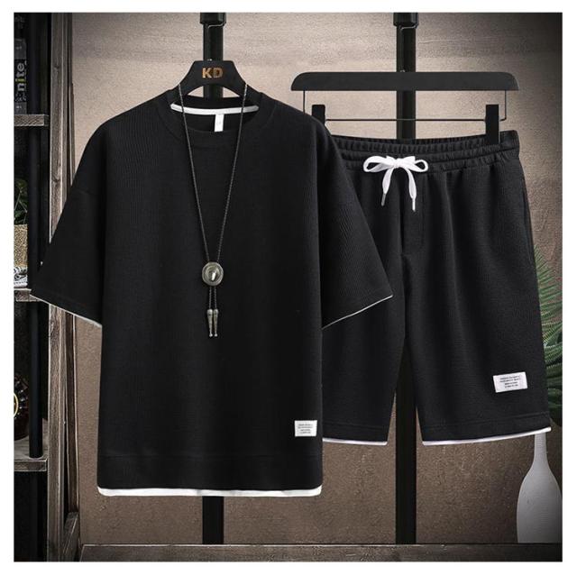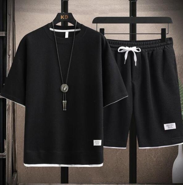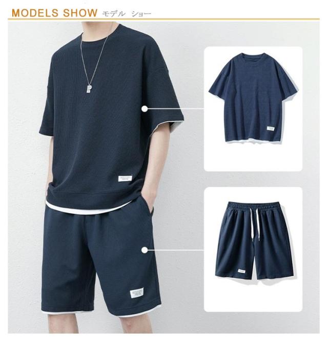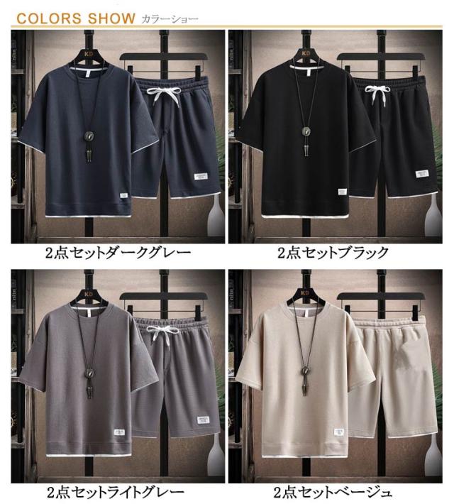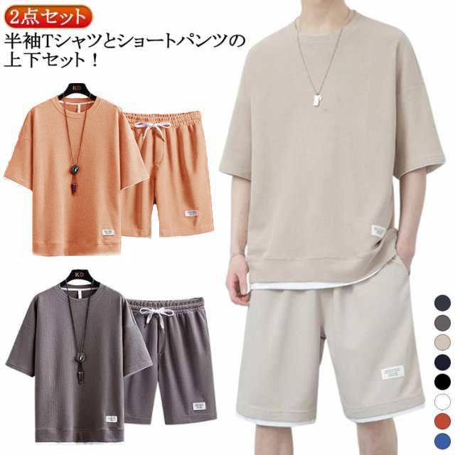 ジャージ 上下 メンズ 半袖 夏用 セットアップ セット 上下セット 上下セット 2点セット 半袖 Tシャツ ハーフパンツ ワッフル ジャージ上下セット スポーツウェア パジャマ ランニング ダンス トレーニングウェア シンプル お洒落