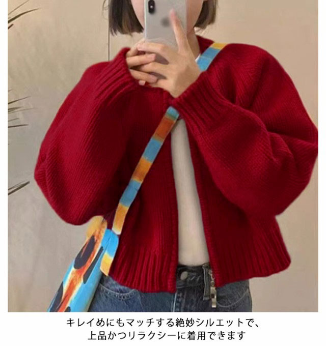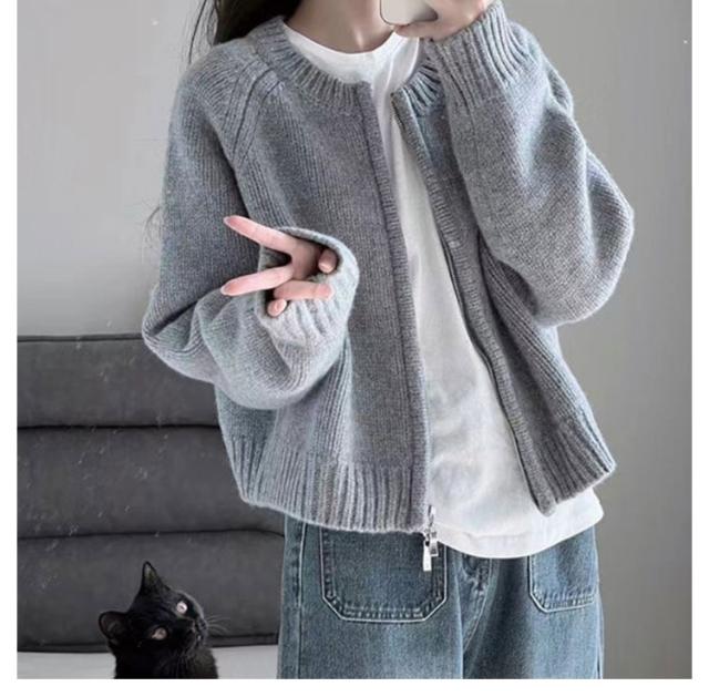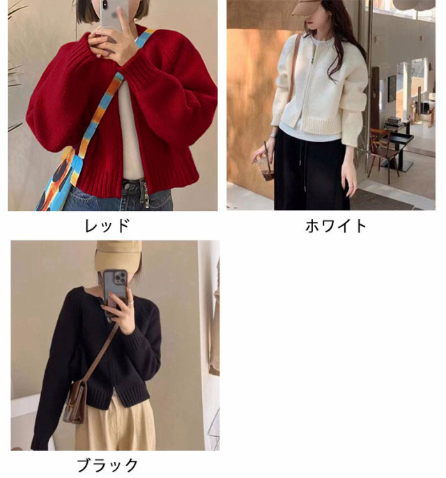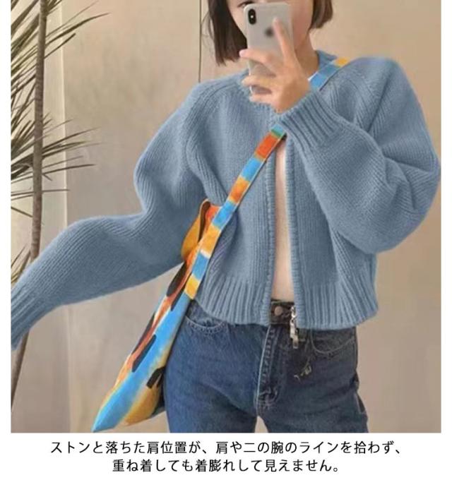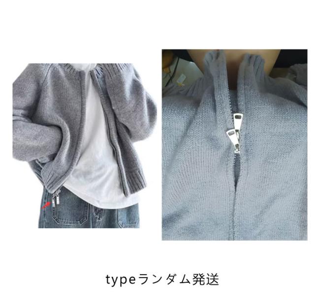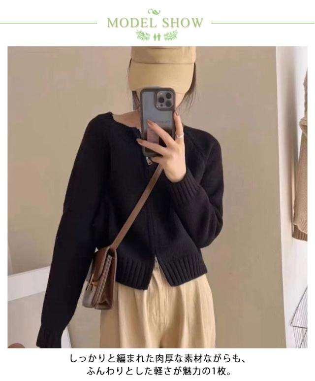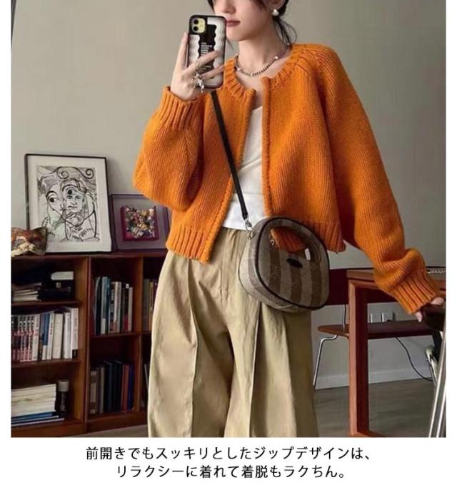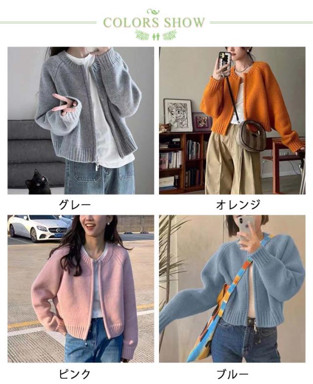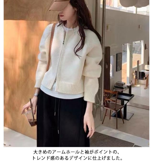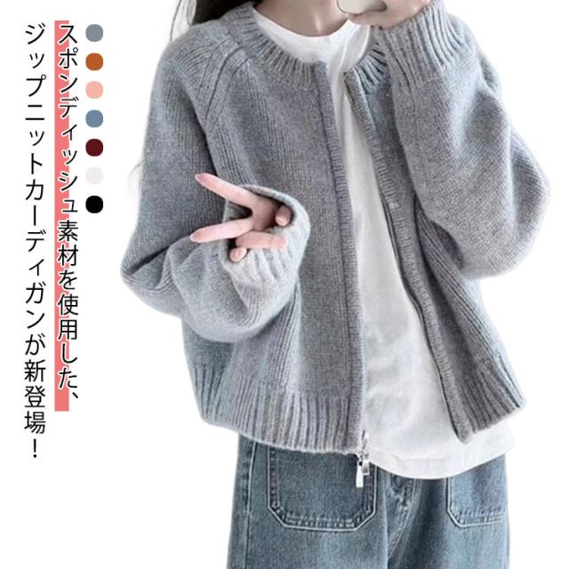 ニット カーディガン レディース ジップカーディガン ニットトップス 厚手 ノーカラー ニットセーター 羽織物 アウター コート リブニット 羽織り ショート丈 丸首 体型カバー トレンド感 春 秋 冬 韓国ファッション