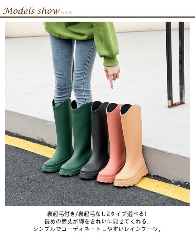 | 裏起毛付き/裏起毛なし2タイプ選べる!長めの筒丈が脚をきれいに見せてくれる、シンプルでコーディネートしやすいレインブーツ。 ひざ下までのロングブーツは水がしみこまない完全防水!どしゃ降りの雨の日にも足をしっかり守ってくれます。 凹凸のある耐久性に優れたアウトソールで、あらゆる路面でグリップ力を発揮します。 履き口がV型だから動きやすく、美脚効果もあります。 コーデにも馴染んでくれるから雨の日でもオシャレを楽しめます。 通勤や通学のデイリーユースはもちろん、フェスやアウトドア、ガーデニングなど雨の日以外にもオススメなシューズです。 | |