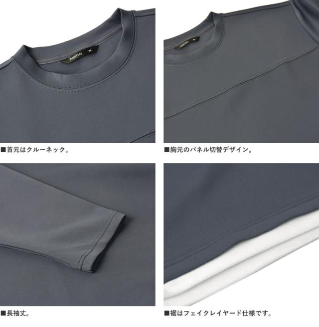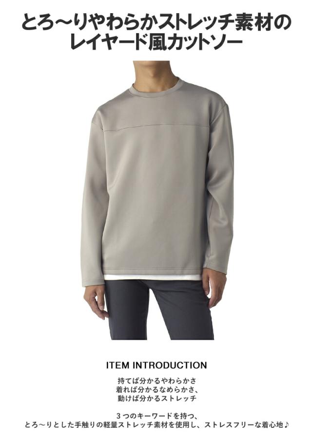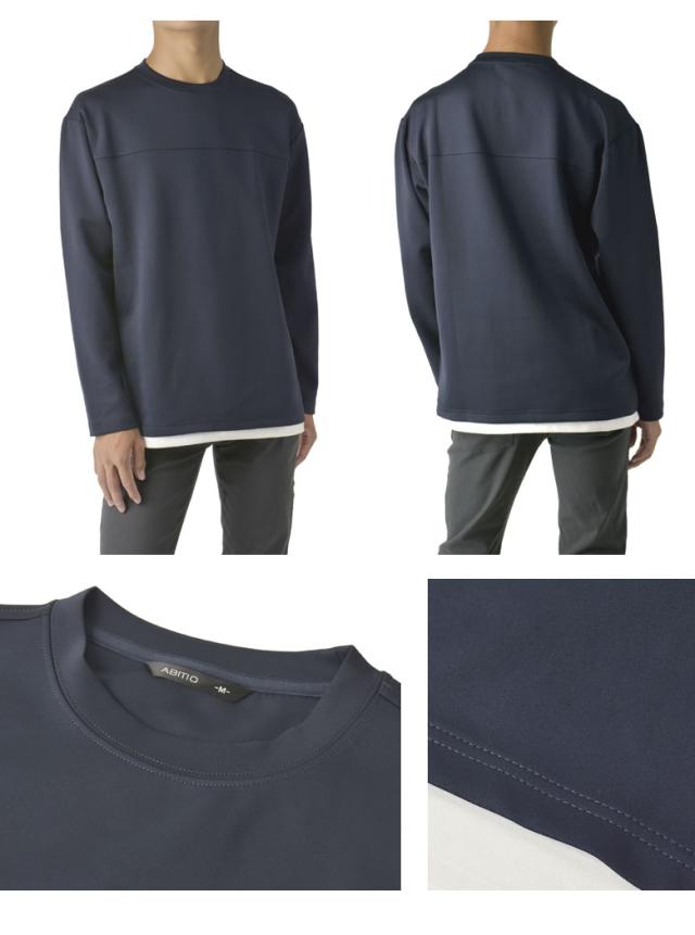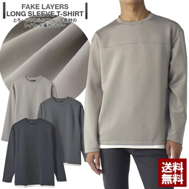 とろ〜リッチ触感 なめらか肌ざわり メンズ フェイクレイヤード 長袖カットソー 長袖Tシャツ スムース ストレッチ 軽量 デオドラント ロングスリーブ【A9O】【パケ1】【A】