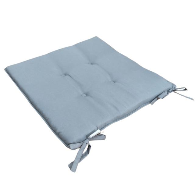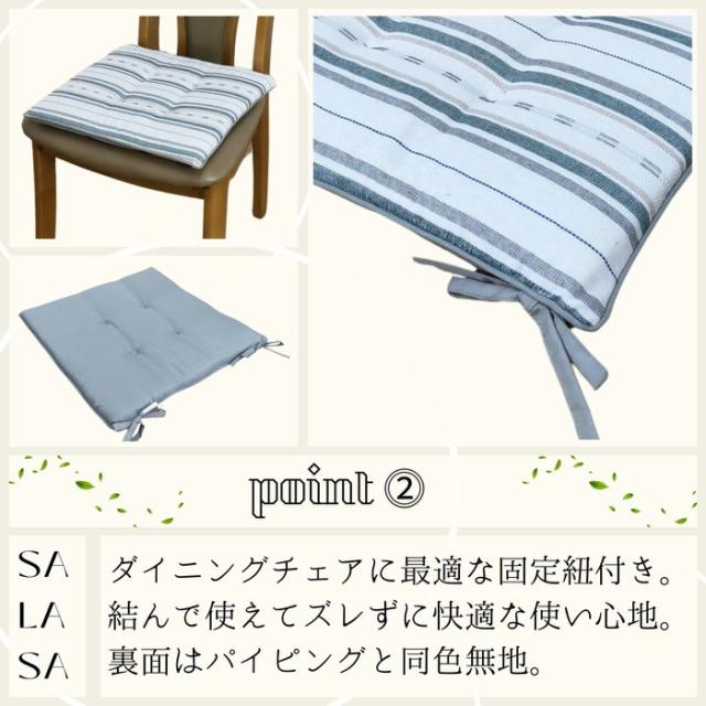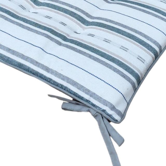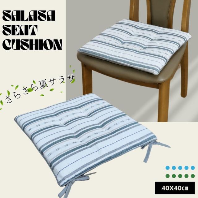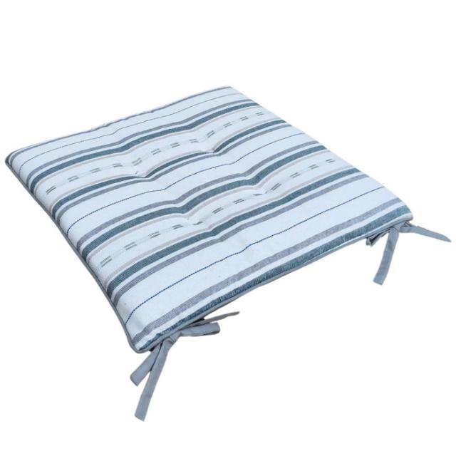 インド綿風椅子用シートクッション サラサ ブルー色 角型 40x40cm さらさらボーダー柄 椅子用固定ひも付き