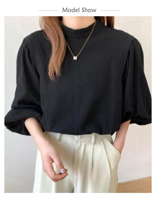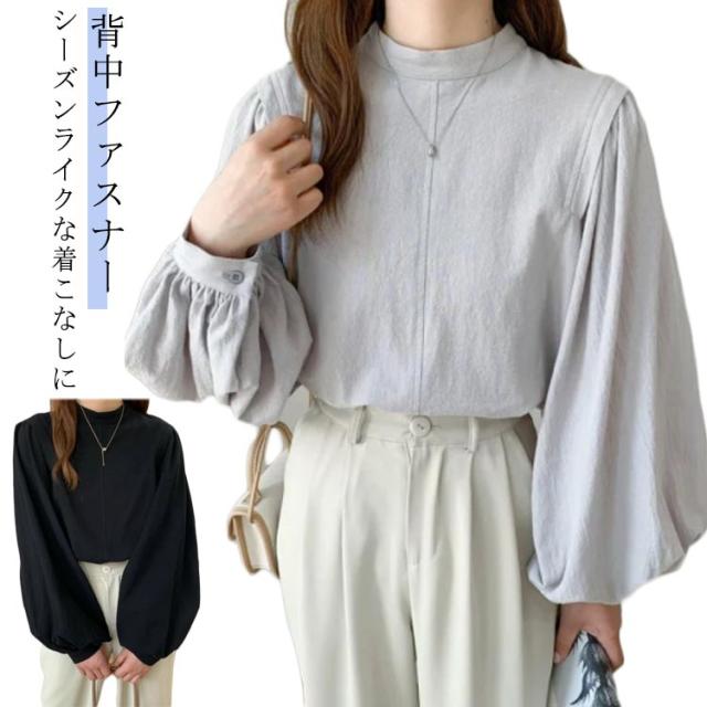 シャツ トップス 春 ブラウス 背中ファスナー レディース ラウンドネック 長袖シャツ ゆったり キレイめ 30代 40代 背中ファスナー 夏 秋 黒