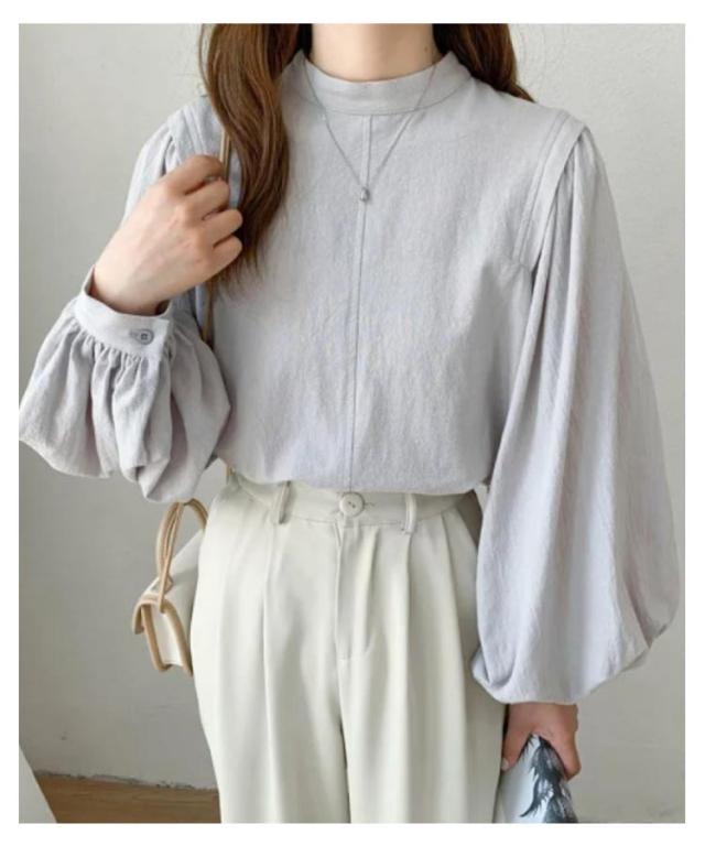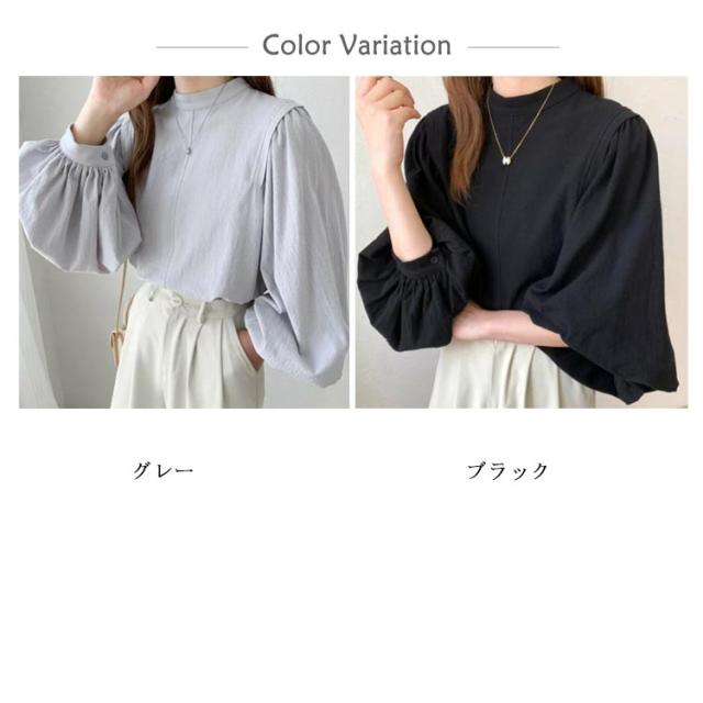 ボリュームスリーブ ブラウス 背中ファスナー 背中ファスナー レディース シャツ ラウンドネック 長袖シャツ 30代 キレイめ 40代 春 トップス 夏 秋 黒