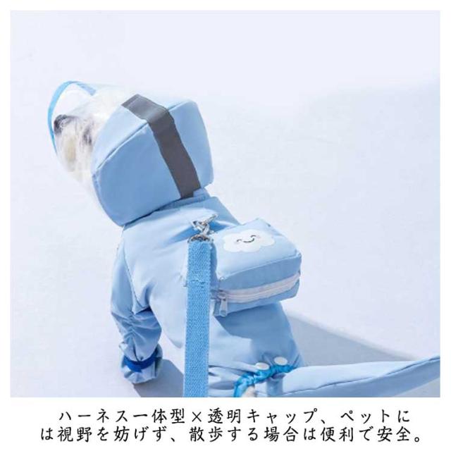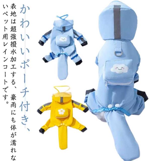 | かわいいポーチ付き、表地は超強撥水加工する、豪雨にも体が濡れないペット用レインコートです。 ハーネス一体型×透明キャップ、ペットには視野を妨げず、散歩する場合は便利で安全。 全身丸ごと包みタイプで、足の毛も尻尾も濡れないように保護します。 ワンちゃんたちのおしっこに便利のために、お腹部分は半オープン式に設計し、男女犬兼用。 フード尻尾部分は取り外し可能です。 光反射デザインで夜も安心! | |