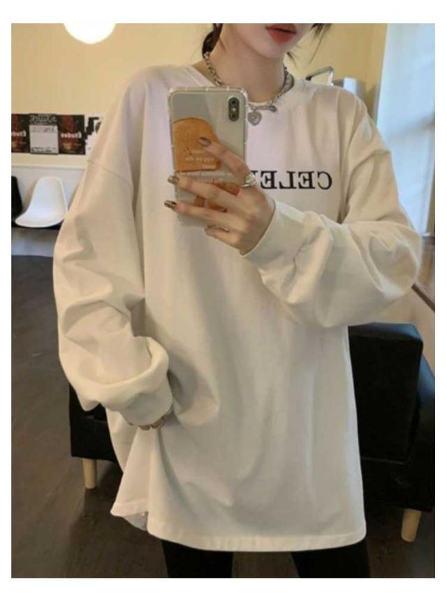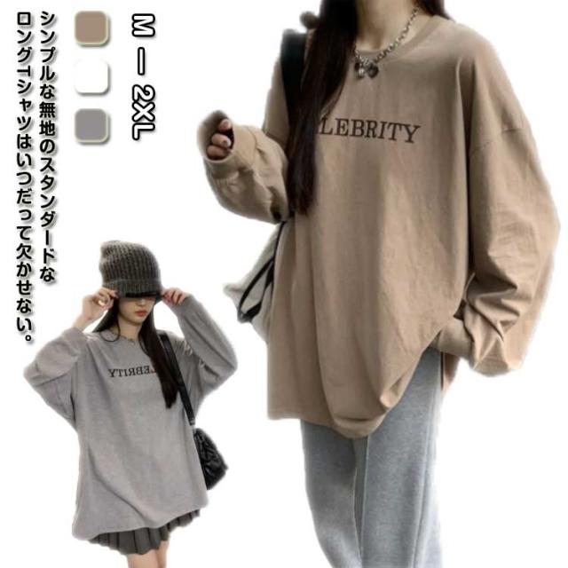 tシャツ ロンT カットソー ティーシャツ ロンT ルーズ レディース チュニック 無地 ロング ロンt 長い Tシャツ スポーツ ルームウェア インナー きれいめ トップス Uネック 長袖 体型カバー 大人 お洒落 お尻が隠れる