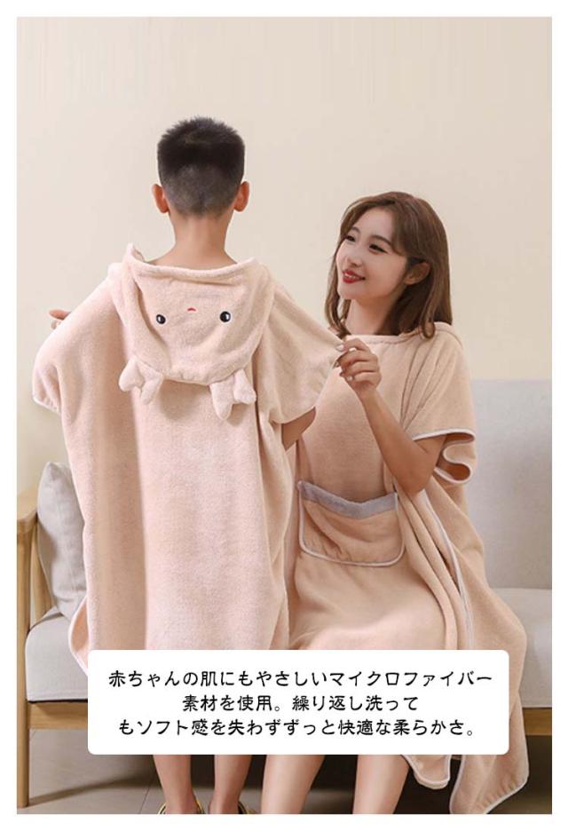 着るバスタオル 親子セット 湯上り バスローブ 着る タオル タオル バスタオル フード付き タオルワンピース 子供 半袖 親子 メンズ レディース 着るタオル キッズ 大人 ワンピース ワンオペ ワンピース バスタオル ビーチタオル