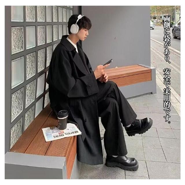 | しっかりとした質感のメンズトレンチコートです。 なシルエットなのでカジュアルになりすぎず、通勤やワークシーンにもご活用いただけます。 両側に袋があり、安全で実用的です。 きれいめにもカジュアルにも対応できるのでどんなコーディネートにもマッチします。 | |