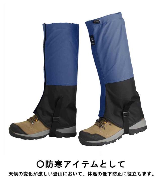 | 登山用ゲイター 防水 透湿 耐久 通気 軽量 ○雨/雪の侵入を防ぐ 透湿防水素材を使用しています。 雨/雪の侵入を防ぎ、足元の蒸れを抑えます。 ○砂や小石の侵入を防ぐ ガレ場やザレ場などの石が多い登山道で、登山靴の中に砂や小石が入ることを防ぎます。 ○パンツを汚れや擦れから守る 公共交通機関を使って山に行く際など、帰りに靴やパンツの裾が泥だらけ…ということは避けたいはず。ほかに登山では木や岩に擦れることでパンツに穴が空いたり擦れが生じるリスクも。 ○防寒アイテムとして 天候の変化が激しい登山において、体温の低下防止に役立ちます。 洗濯を繰り返しても撥水・防水性を確保する耐久性も備えています。 軽量ながら防水性も備えており、アウトドアスポーツ、ハイキング、ウォーキング、サイクリング、ジャングル横断、釣り、バックパッキング、砂漠、キャンプ、登山など、幅広く対応できるゲイターとなっています。 | |