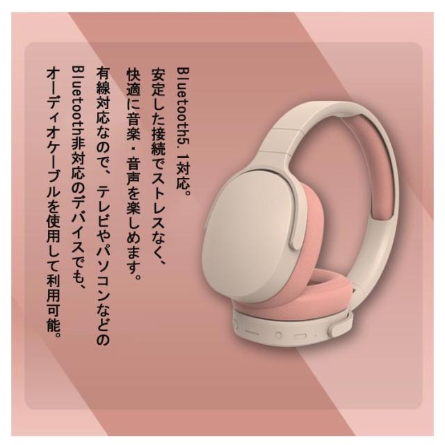 | ワイヤレス&有線対応 ワイヤレスヘッドホン マイク付き Bluetooth5.1対応。安定した接続でストレスなく、快適に音楽・音声を楽しめます。 有線対応なので、テレビやパソコンなどのBluetooth非対応のデバイスでも、オーディオケーブルを使用して利用可能。 迫力あるサウンドを楽しめる40mmの大口径ドライバを搭載しています。高音域から低音域までバランスの良いクリアな音質。 フィット感の高い密閉型のため、遮音性が高く音漏れが少ない、リスニングに適しています。 電話がかかってきた時も内蔵マイクでハンズフリー通話が可能です。通話応答もヘッドホンのボタン操作によって可能です。 軽量かつコンパクトで持ち運びやすい、おすすめのワイヤレスヘッドホンです。 バッテリーは最大10時間と長く利用できます。 接続方法:Bluetooth / プラグ接続 / SDカード再生 | |