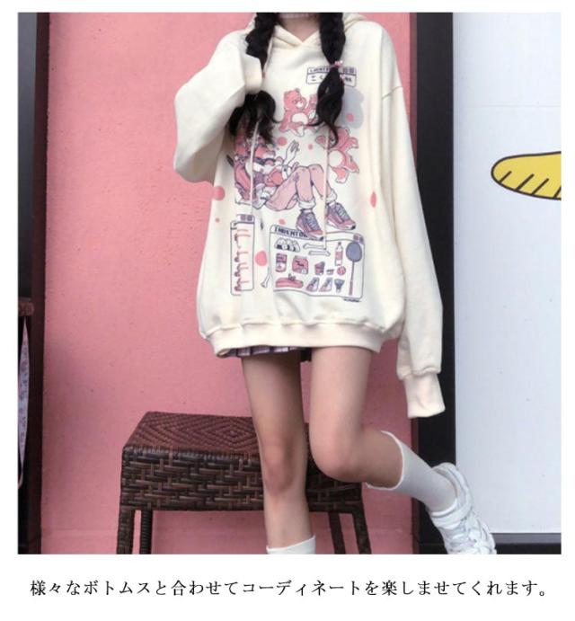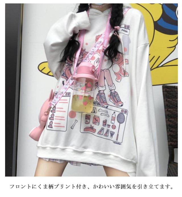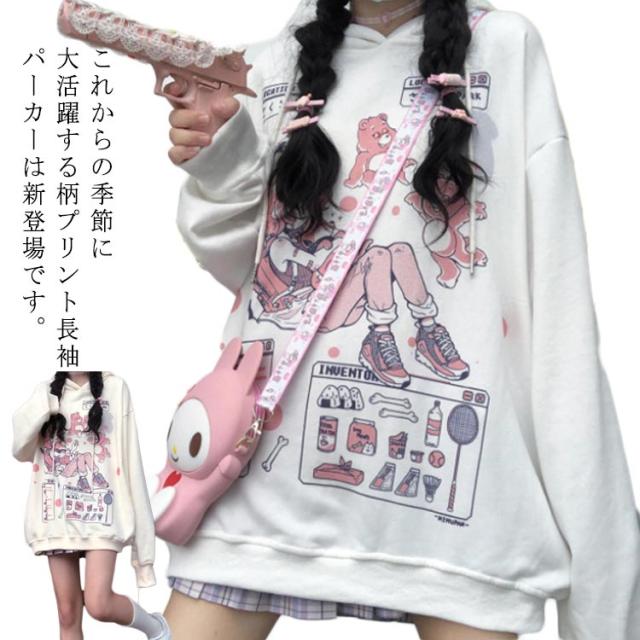 プルオーバー プリント 地雷系 サブカル系 レディース トレーナー トップス プルオーバー パーカー 長袖 病みかわいい 服 フード付き 長袖 量産型 サブカル地雷 天使界隈 ストリート系 フーディー Y2K 原宿風 ゴスロリ 春 秋 冬 ゆったり