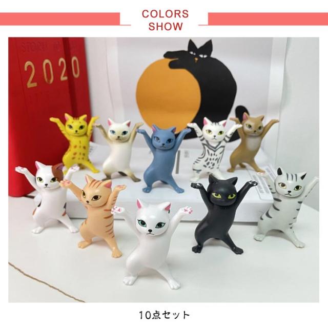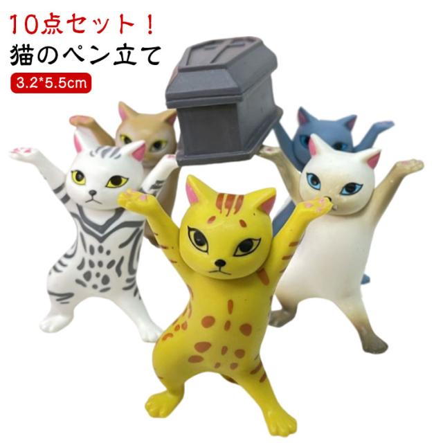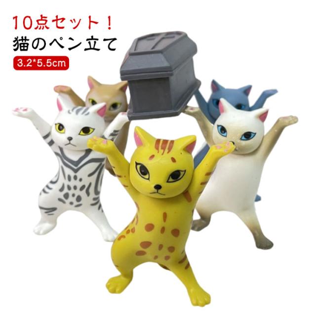 モデル 小さい おしゃれ 置物 猫のペン立て 雑貨 10点セット!猫 ぺんおき 猫の置物 プレゼント ペンホルダー ネコ グッズ ネコ ペンたて ペンホルダー ヘッドフォンホルダー 踊る猫 ダンシングキャット