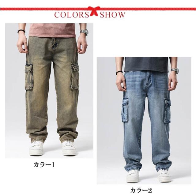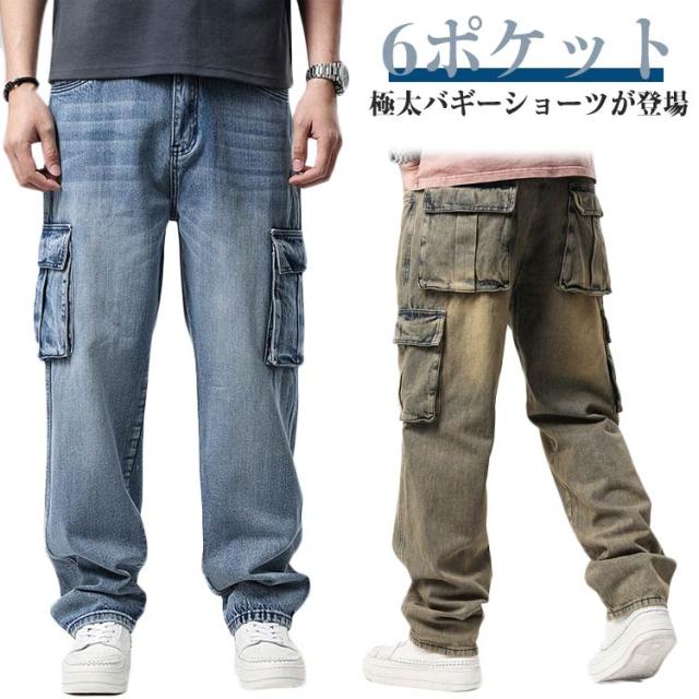 バギーパンツ 長ズボン ヒップホップ 袴パンツ ジーンズ バギーパンツ ジーパン メンズ 秋 夏 デニムカーゴパンツ B系 春 大き目 太め 冬 6ポケット デニムパンツ ストリート系 ゆったり デニム 大きいサイズ カーゴパンツ 綿 ワイドパンツ