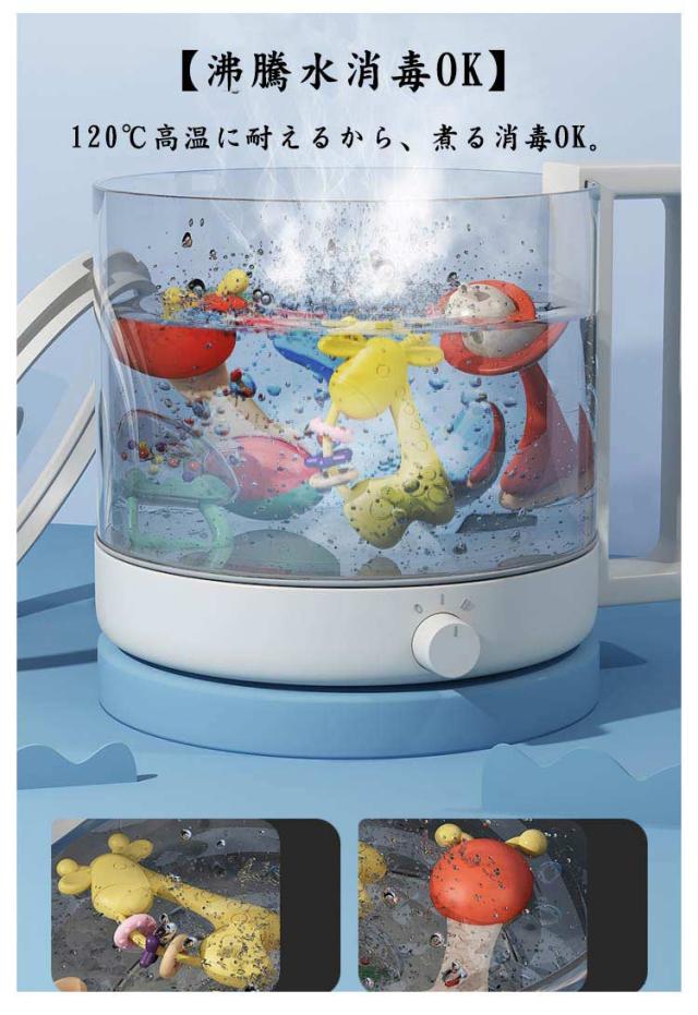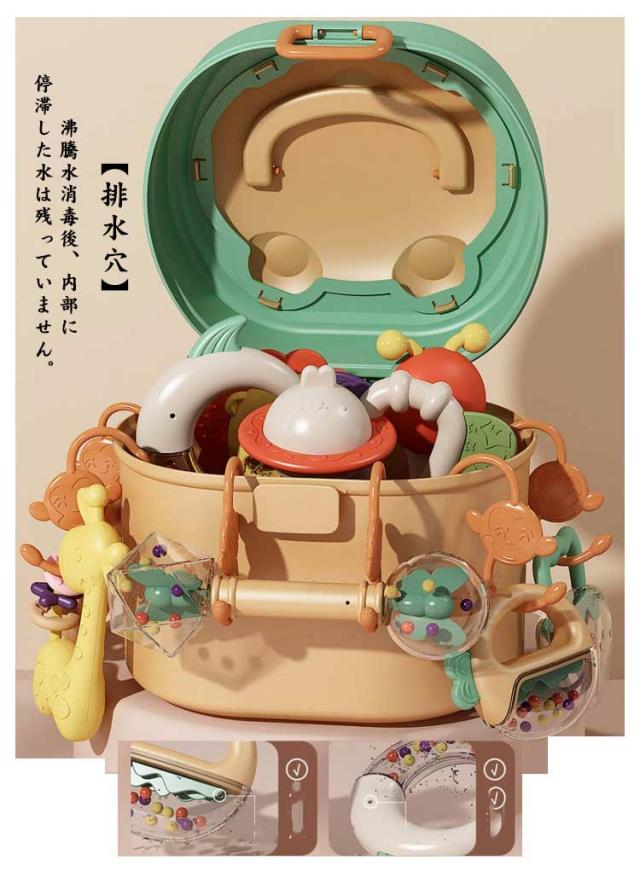 | 赤ちゃん玩具10点セット・可愛い収納ボックス付き。 【安全素材】ベビーの安全性を考慮し、安全でチュアブルな天然ゴムを使用し、BPA /フタル酸を添加せずに手塗りの食品塗料を使用しています。扱いやすいサイズと丸みを帯びた角のデザイン、赤ちゃんが揺れて音を立てる人生初のおもちゃです。 【沸騰水消毒OK】120℃高温に耐えるから、煮る消毒OK。 【排水穴】沸騰水消毒後、内部に停滞した水は残っていません。 【がらがら音の出るおもちゃ】揺れるとガラガラと音がします。バンプがいろいろあり、指を掴んだりトレーニングしたりするのに適しています。赤ちゃんの手や指の運動・視覚・聴覚を刺激し、発達を促してくれる手遊びおもちゃです。 【収納ボックス付きで持ち運び便利】収納やお出かけに便利な収納ボックスが付いています。 | |